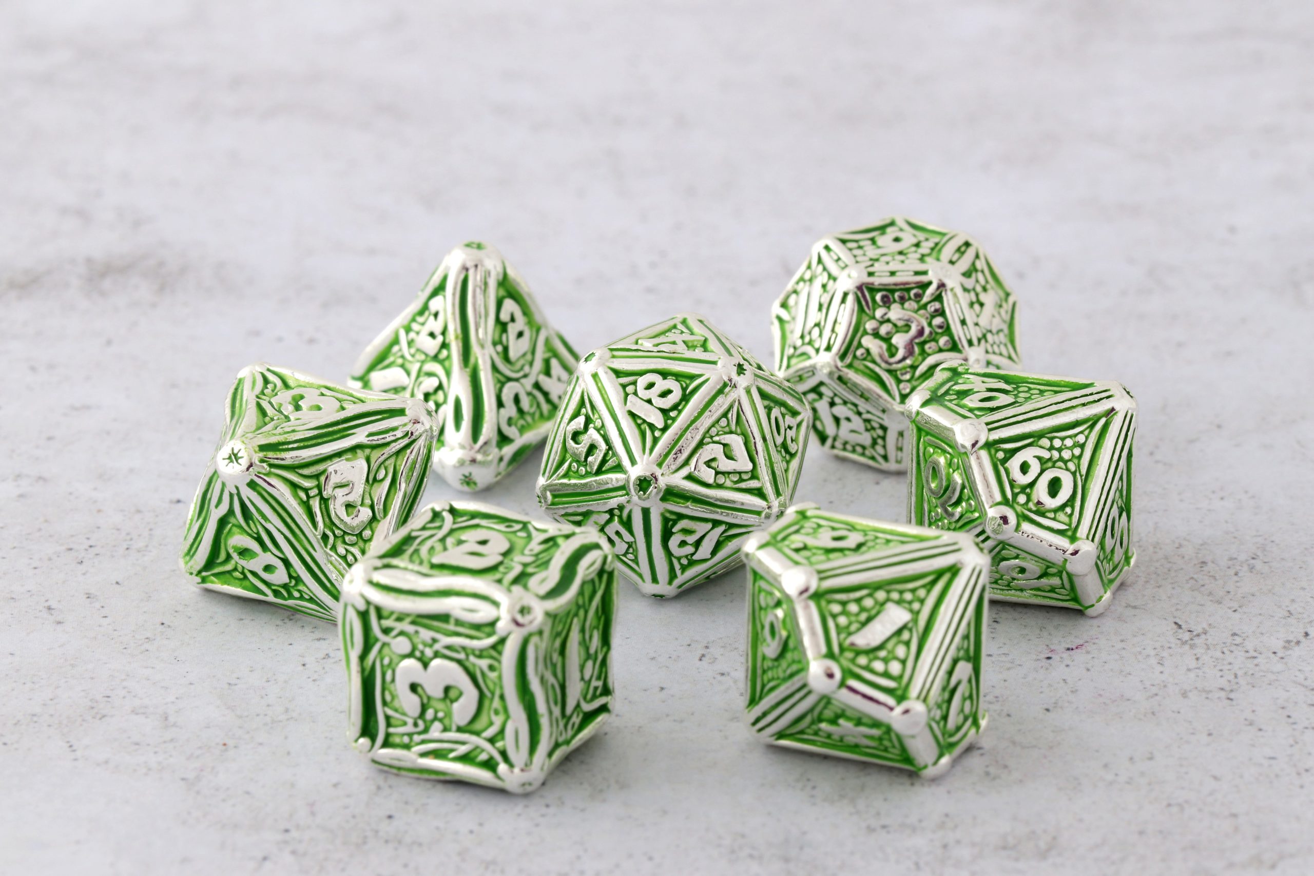 Made by Wombat (Chuck Stover) Helix Dice in Antique Silver
